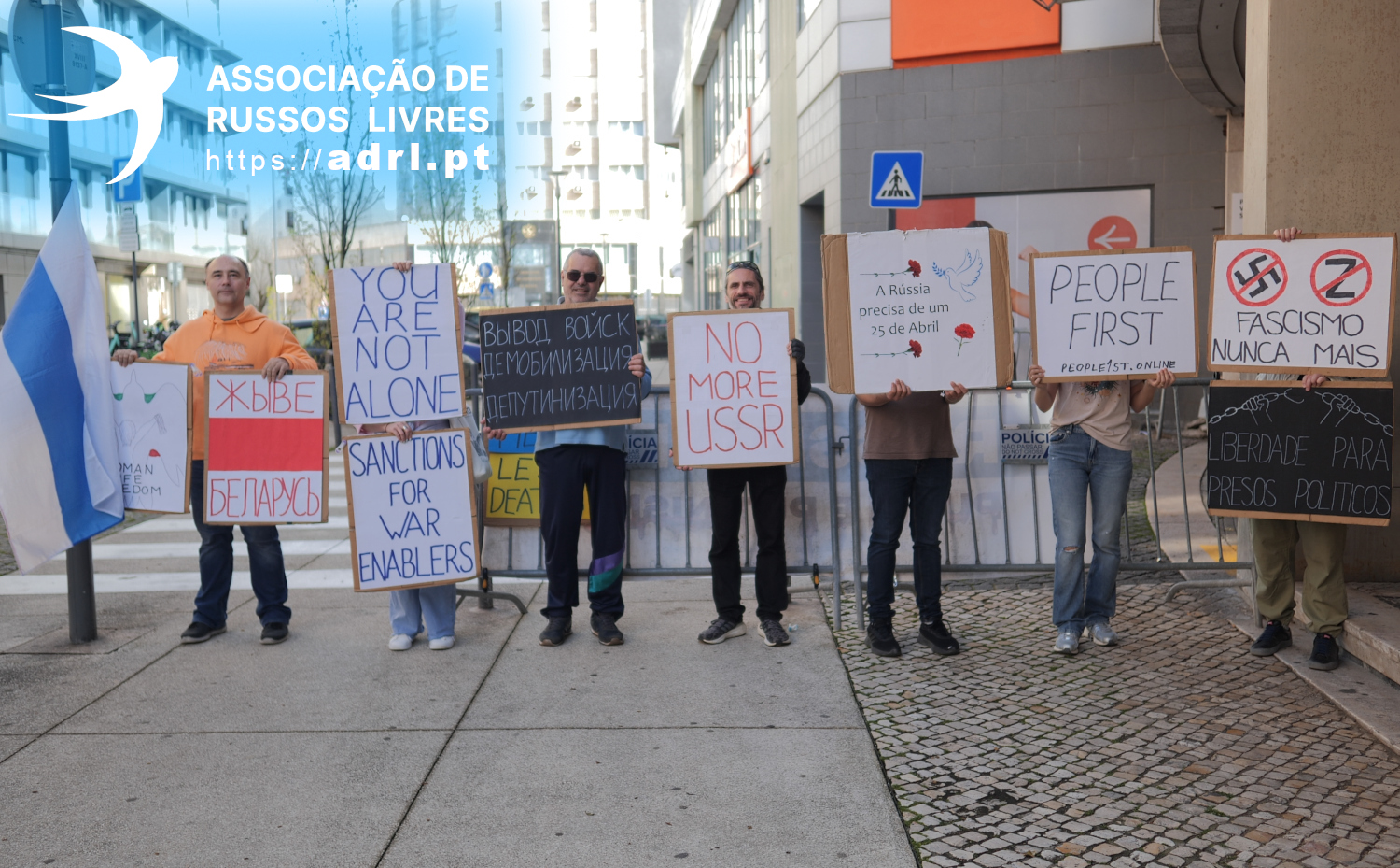 You're watching news from the weekly rally in front of the Russian Embassy in Lisbon. Today is March 21st, 2:30 PM.