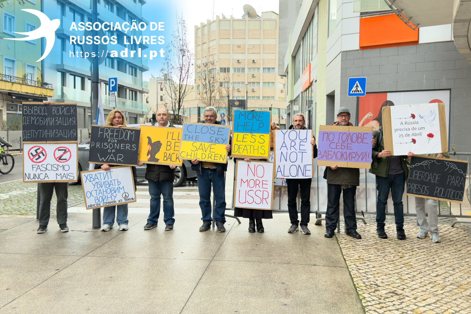 You're watching news from the weekly rally in front of the Russian Embassy in Lisbon. Today is December 20, 2:30 PM.