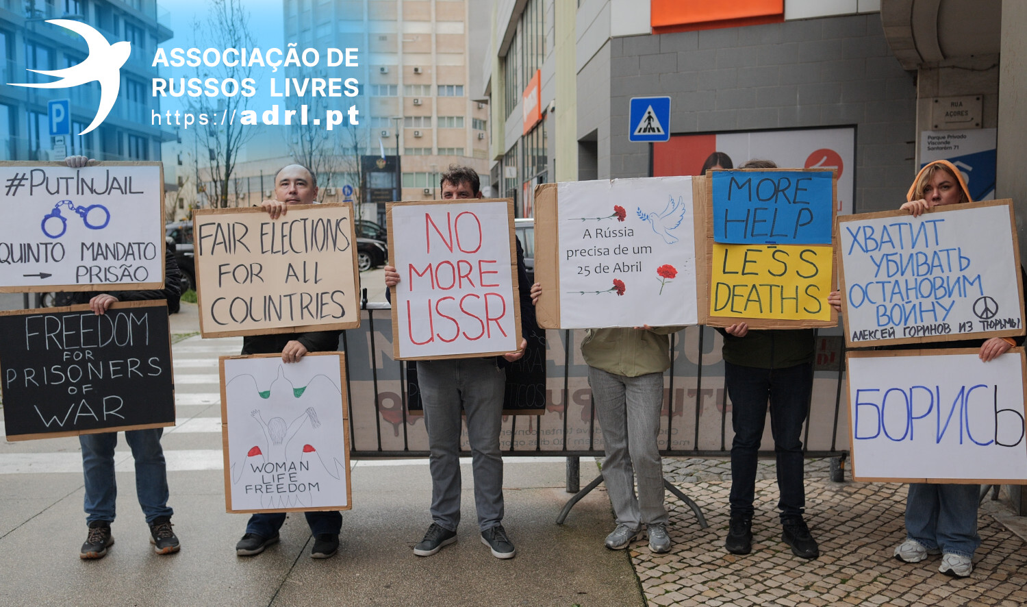 You're watching news from the weekly rally in front of the Russian Embassy in Lisbon. Today is January 3rd, 2:30 PM.